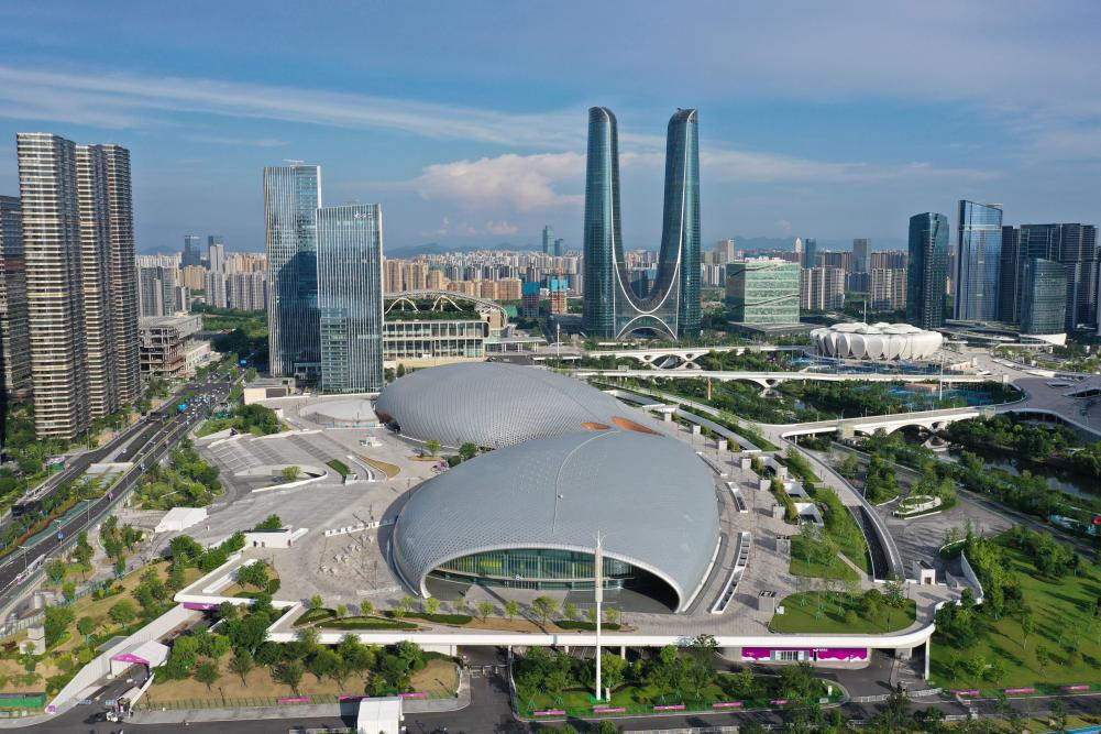 2023年6月28日,杭州奥体中心游泳馆、体育馆(无人机照片)。新华社记者 黄宗治 摄